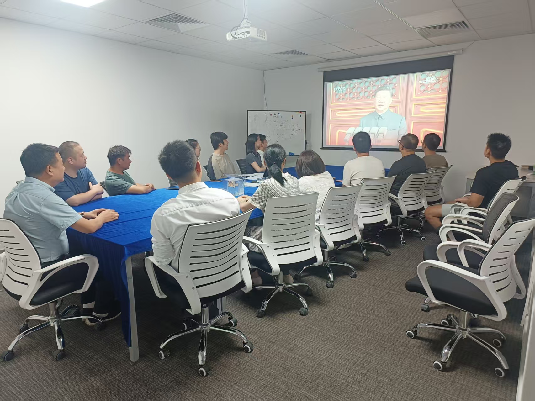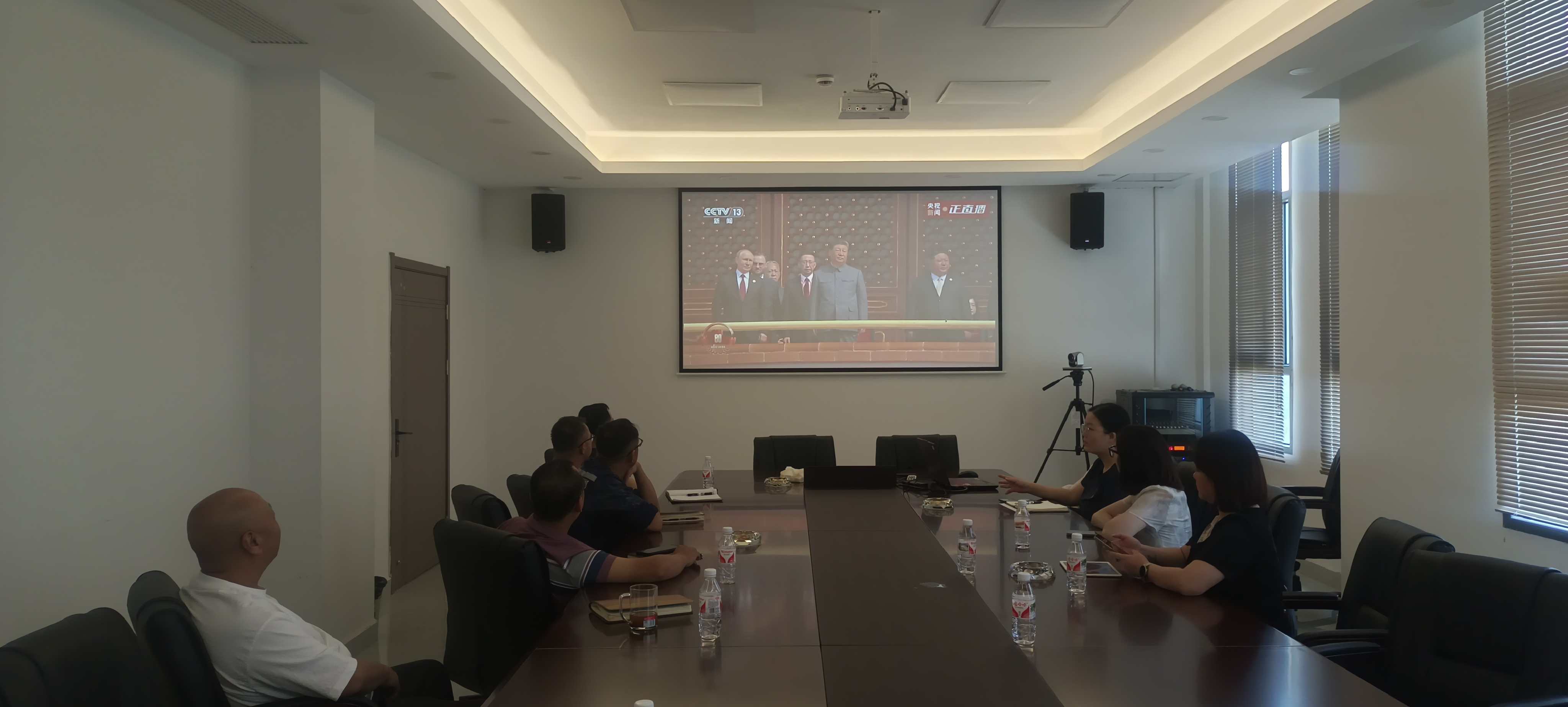 上午9时,大家准时聚集在各公司的会议室,自发整理好衣襟,眼神中满是期待与肃穆。当直播画面切到天安门广场,鲜艳的五星红旗在晨光中冉冉升起,激昂的歌声里,是跨越代际的信仰传承,是属于京兰人的集体共鸣。?